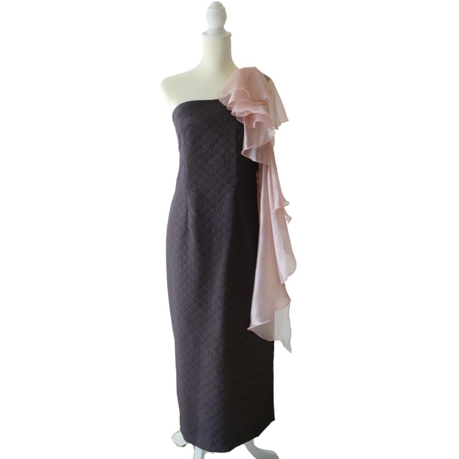 ワンショールダーのジャガードロングワンピース。